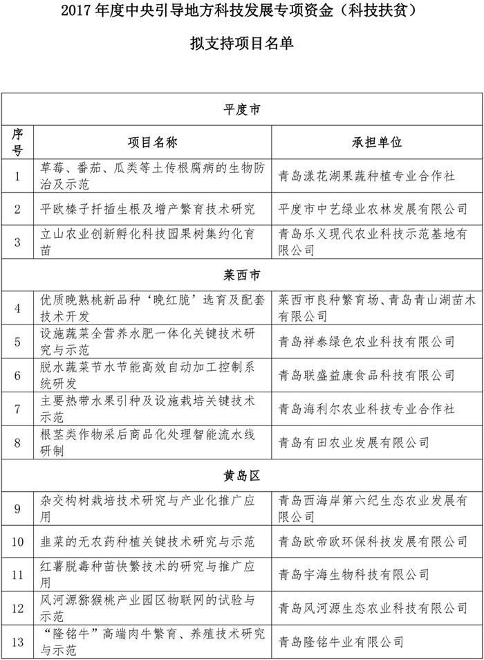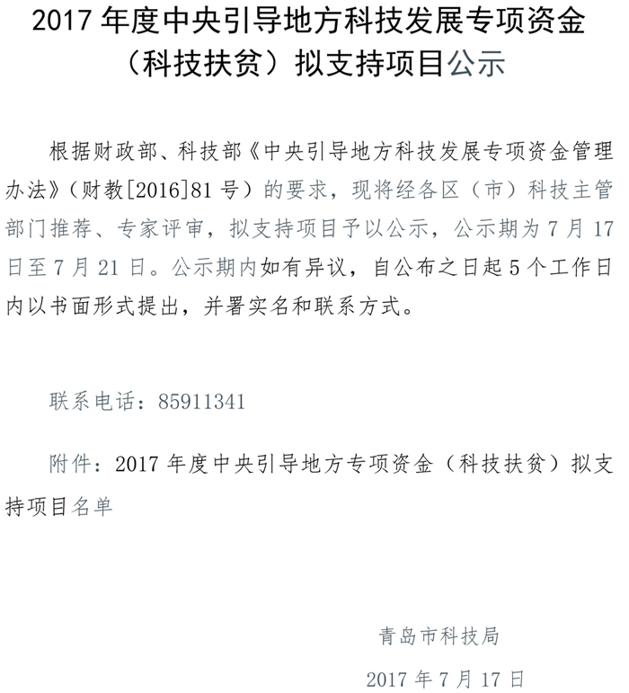 2017年度中央引導地方科技發(fā)展專(zhuān)項資金(科技扶貧)擬支持項目公示