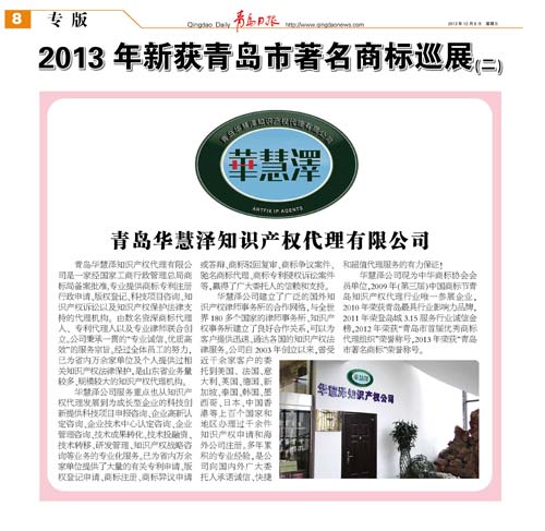 實(shí)現商標價(jià)值轉化。商標作為企業(yè)無(wú)形資產(chǎn),是企業(yè)競爭有力武器。在應對國際金融危機過(guò)程中,擁有馳、著(zhù)名商標的企業(yè),在穩固市場(chǎng)、贏(yíng)得競爭方面優(yōu)勢明顯。在工商機關(guān)宣傳引導下,近年來(lái)企業(yè)通過(guò)運用商標許可、質(zhì)押等手段,充分發(fā)揮商標的價(jià)值作用。截至目前全市商標權質(zhì)押融資達5.6億元,促進(jìn)了企業(yè)發(fā)展。加大商標示范單位創(chuàng )建工作,今年省局下發(fā) 《關(guān)于公布2012年度山東省商標戰略實(shí)施示范縣(市區)、示范企業(yè)和示范園區的通知》,確定城陽(yáng)區、即墨市、海爾集團、海信集團、青啤公司等五家單位為全省商標戰略實(shí)施示范單位,進(jìn)一步提升了我市實(shí)施商標戰略水平。