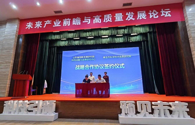 2023年8月28日,青島市科學(xué)技術(shù)信息研究院與山東省創(chuàng )新發(fā)展研究院科技戰略與政策研究中心在“未來(lái)產(chǎn)業(yè)前瞻與高質(zhì)量發(fā)展”論壇活動(dòng)上簽訂戰略合作協(xié)議。雙方將重點(diǎn)聚焦海洋物聯(lián)網(wǎng)等未來(lái)產(chǎn)業(yè)系列重大問(wèn)題和難點(diǎn)問(wèn)題,創(chuàng )新合作模式,打造交流平臺,開(kāi)展全方位多層次的戰略合作。山東省科技廳黨組成員、省創(chuàng )發(fā)院黨組書(shū)記、院長(cháng)劉峰,青島市科技局黨組成員、副局長(cháng)徐凌云出席見(jiàn)簽。