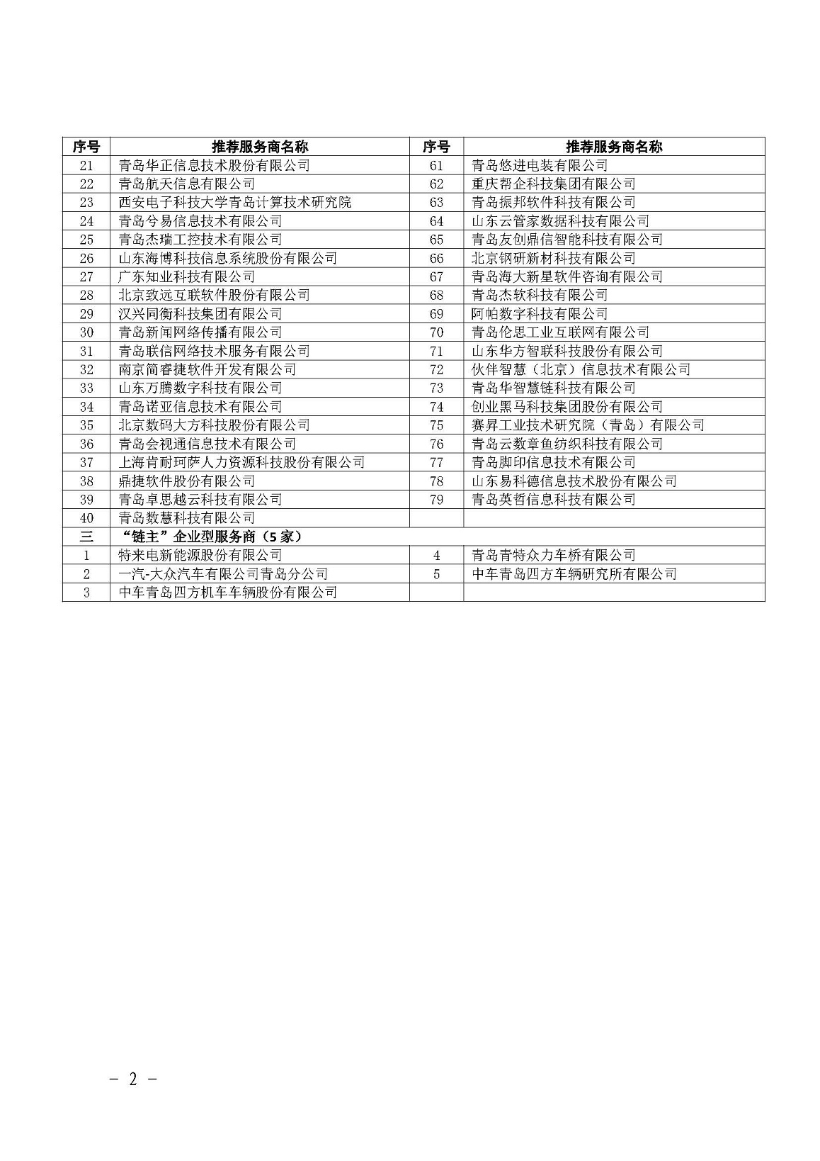 附件: 入圍青島市中小企業(yè)數字化轉型城市試點(diǎn)推薦服務(wù)商資源池名單(第一批)